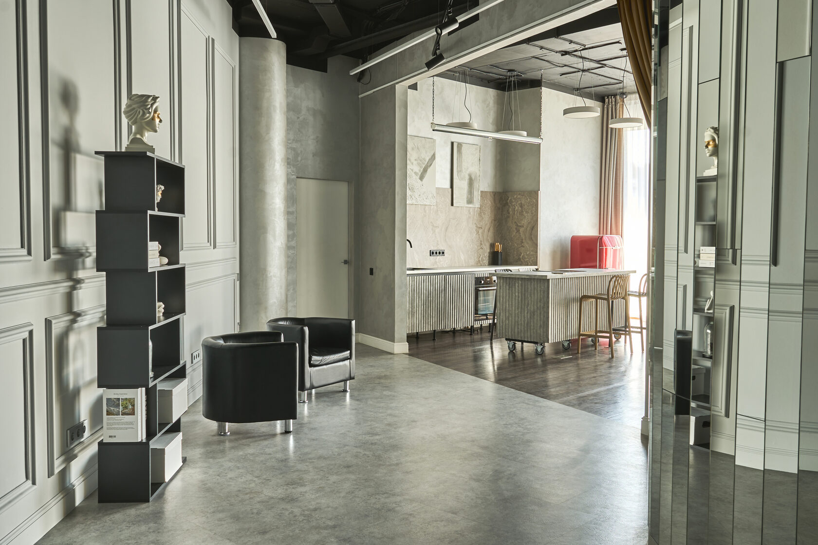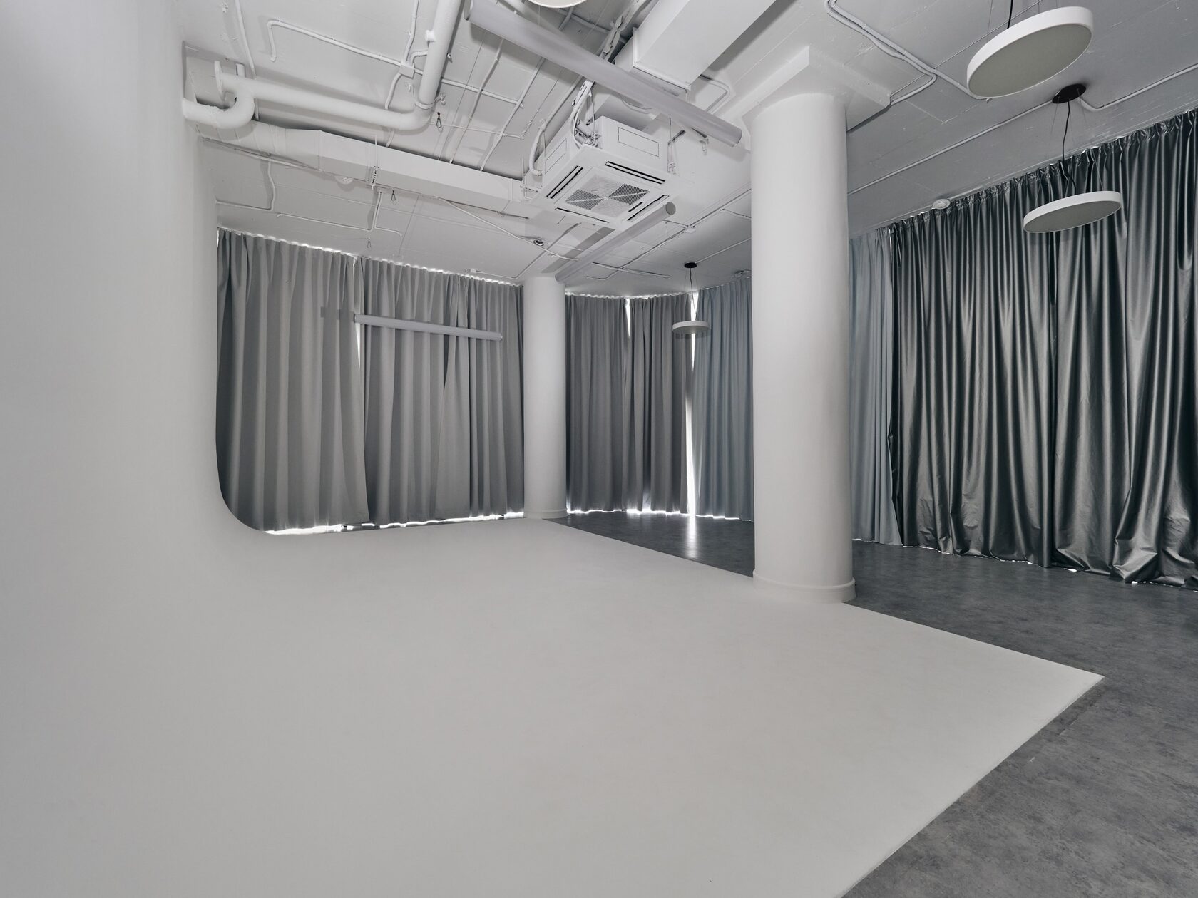 Включает в себя 3 локации: Серая стена с двумя креслами, зеркальная стена. Съемки подкастов и фотосессии.