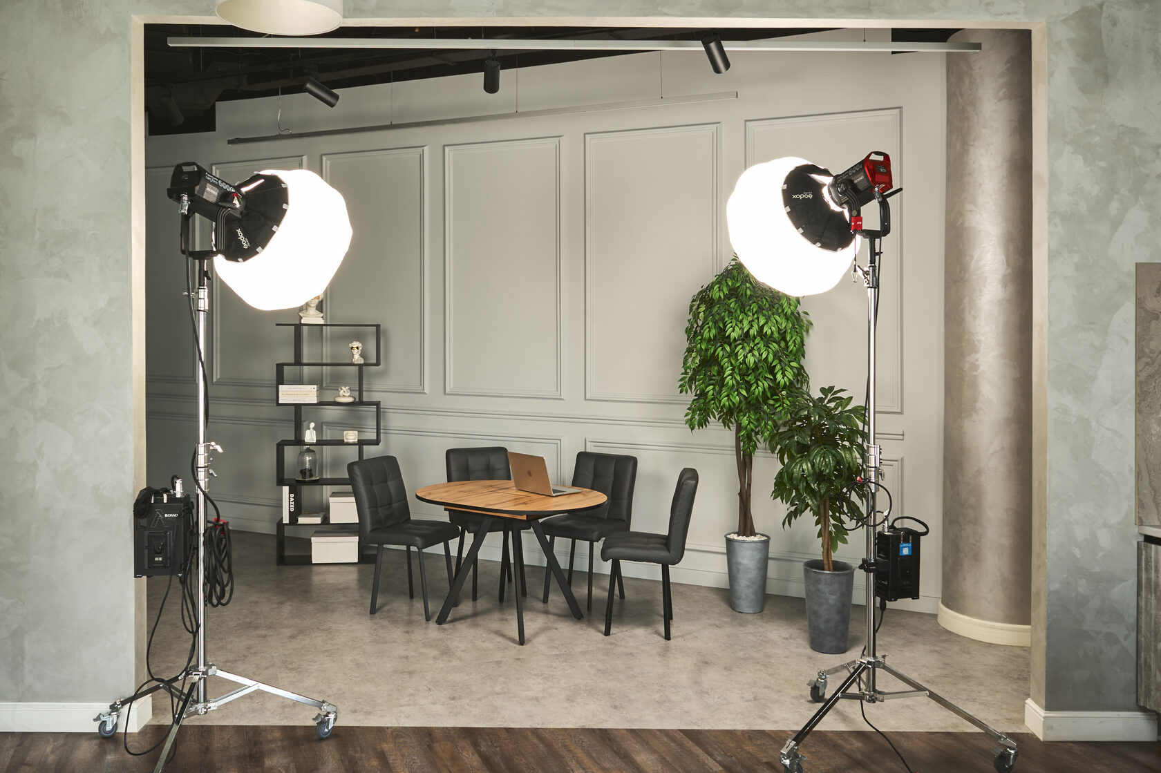 Включает в себя аренду всей студии, 3 световых источника. При аренде студии для подкаста услуги видеографа, аренда техники оплачиваются отдельно. *Наносить макияж, распылять средства для укладки волос в залах запрещено, если вам нужно собраться перед съемкой, просим вас воспользоваться гримеркой.
